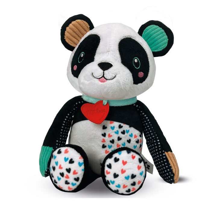 The gentle Panda will offer you special moments with your baby! Its black and white elements are designed to support the development of the childs visual perception in the first months of life. The sweet melodies are ideal to calm the child and help him relax. Made of soft fabrics, everything is ideal for hugs helping to develop vision and touch. Attention to detail and research of materials ensure the quality and safety of the product.