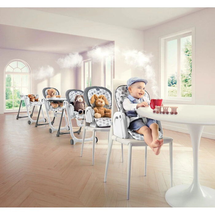 - High Chair (6-36 months): The Baby Hug 5-in-1 is also ideal for the weaning period. Simply straighten the backrest, adjust the height using the convenient pedal, and bring the Baby Hug close to the table.