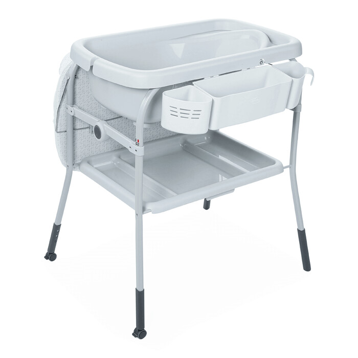 A complete and comfortable baby bath & changing table for better hygiene management from birth up to 12 months. Extremely practical thanks to the tray and storage compartments, where you can keep everything you need for changing and bathing. Maximum comfort for the baby with a soft reducer for changing and an ergonomic tray.