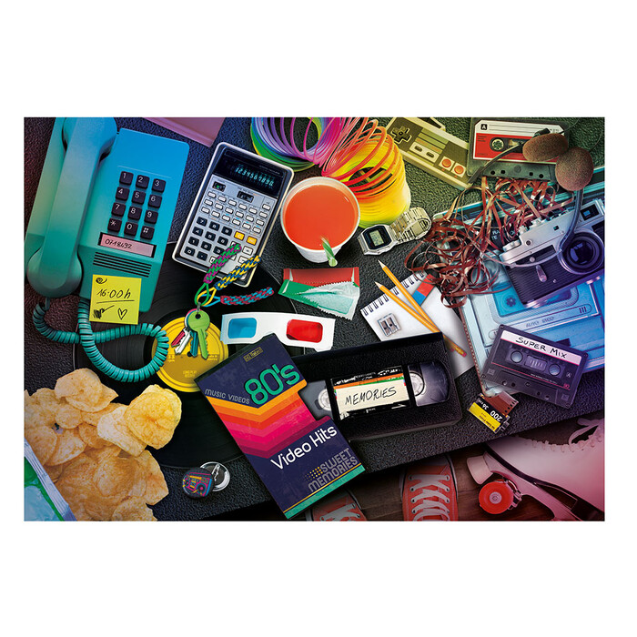 Clementoni Puzzle 1000 pieces High Quality Collection 80s Nostalgia. The most appealing images, the greatest variety of sizes and signature Clementoni quality for a range that is a gold standard for jigsaw lovers everywhere. Acutely attuned to the importance of environmental awareness, Clementoni makes extensive use of recycled materials and avoids any components containing pollutants.