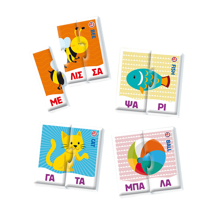 A fun educational game, specially designed for children aged 4 and up. Contains colorful illustrated cards in two languages for the first approach of spelling and reading by children in a pleasant way. Starting with simple words, the child begins to understand the mechanisms that determine the division of words into syllables and through happy pictures and fun games learns to spell and read.