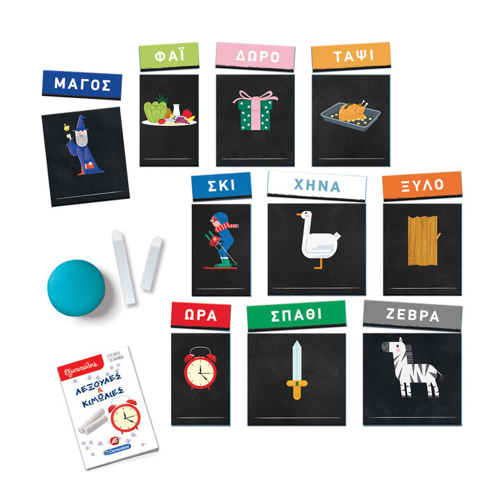 Write, delete, rewrite. Learning is always a new game! A set of 10 blackboards and 10 cards with words associated with images. Thanks to the chalks and the eraser, child can play again and again!