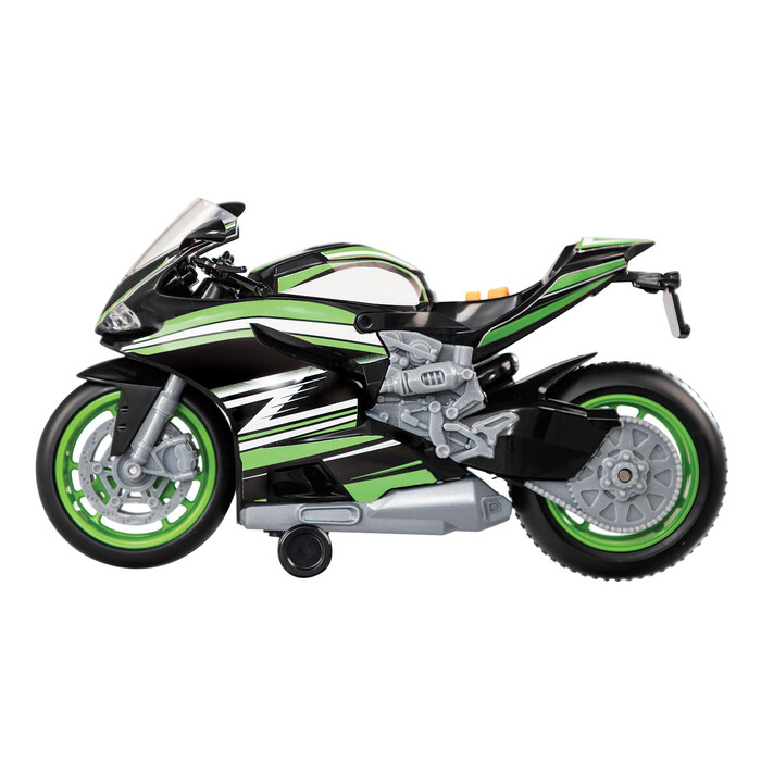 Accelerate with the push of a button! Listen to the sound of the engine as the vehicle starts and watch as it motors forward to perform a wheelie! Sound effects and lights! The perfect gift for any enthusiastic little racer, offering hours of imaginative fun! Available in 2 colors.