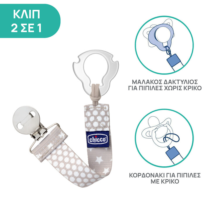 Chicco Fashion Pacifier Clip, Beige, for 0+ Months